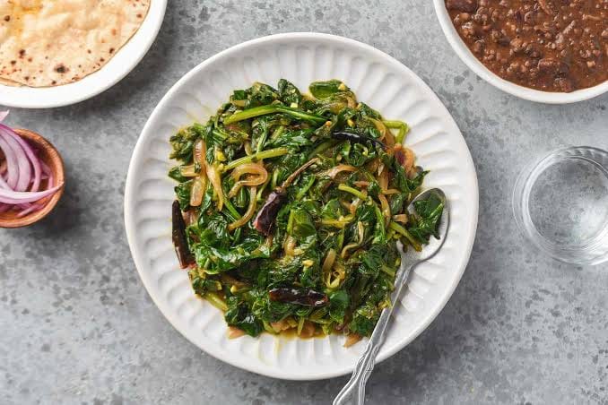 Prepare Ingredients: Wash and chop the spinach leaves. Finely chop the onion, tomato, and green chilies.